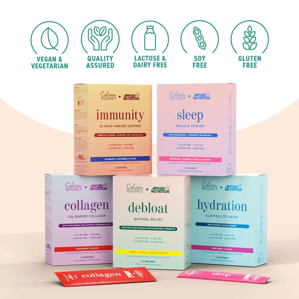 Relieve bloating and support digestion with Coleen Rooney’s Debloat Powder Sticks, a vegan and Halal-certified blend of apple cider vinegar, probiotics, digestive enzymes, and soothing botanicals like ginger and dandelion root. These gluten-free, soy-free sachets are easy to use and come in a refreshing lemon, ginger, and turmeric flavour. Mix with water for natural relief and gut health support wherever you are.